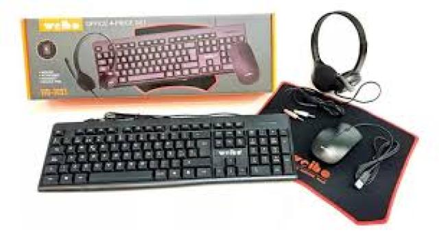 KIT COMBO PC OFICINA 4 PIEZAS TECLADO MOUSE PAD Y AURICUALRES